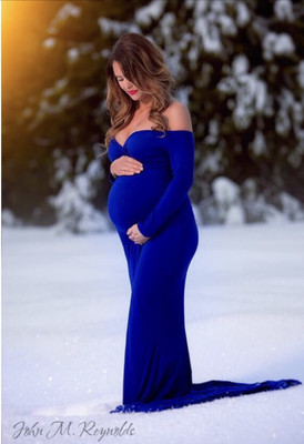 G233 Royal Blue Maternity Shoot Two Trail Baby Shower Gown Size