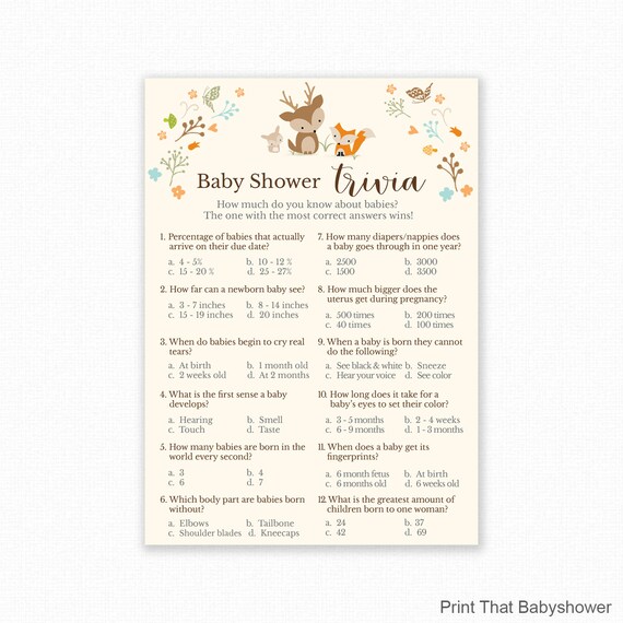 Baby Shower Games Baby Trivia Game Baby Shower Trivia Etsy